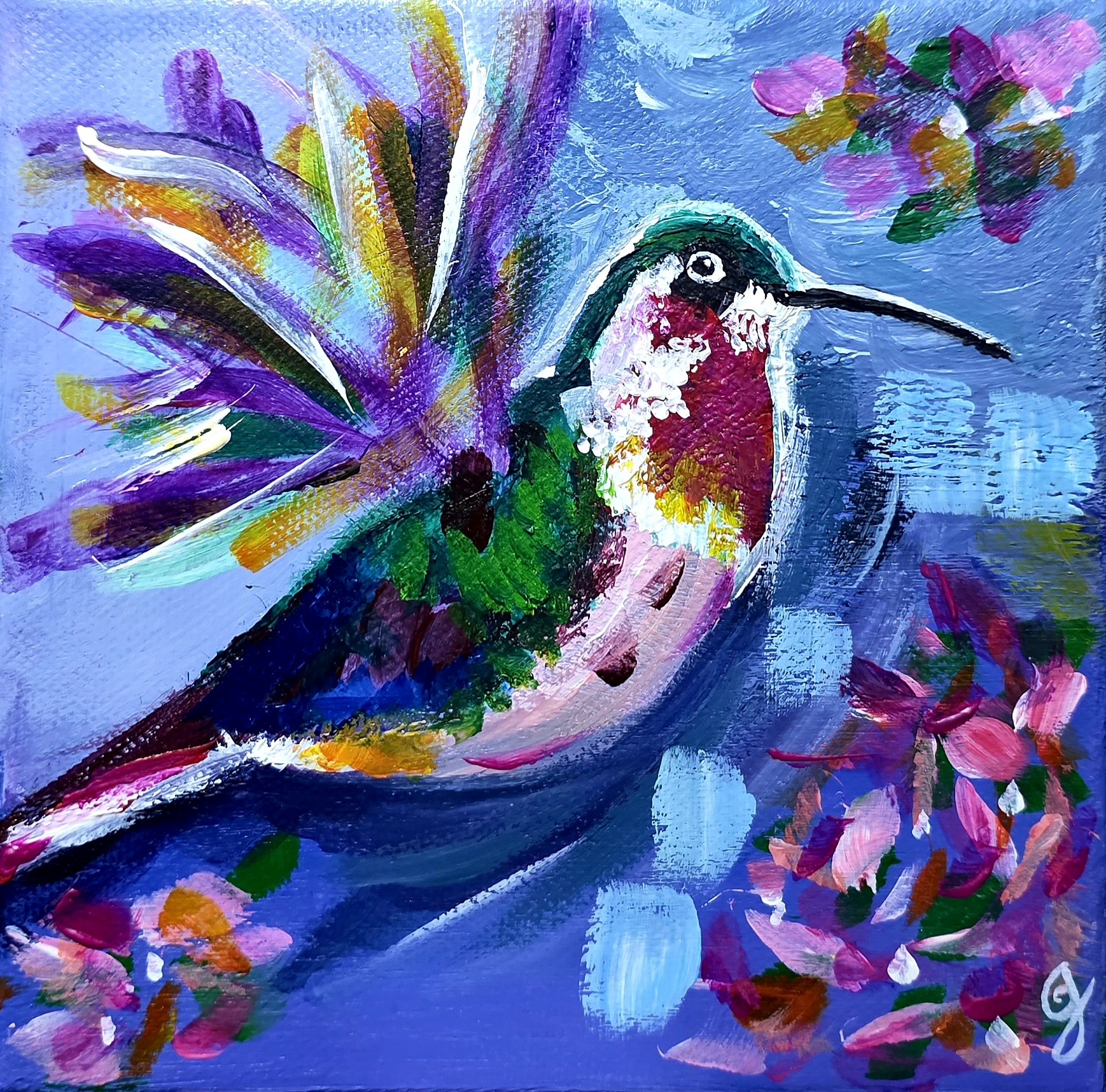 The Hummingbird: This painting became a symbol of moral resilience. Its ability to hover in stillness amid motion mirrored the inner calm I strive to cultivate in the occasional chaos of ICU care. The hummingbird’s striking colours reminded me of the vibrancy and uniqueness of every patient. Each life reflects its own hues of love, relationships, and meaning. In palliative care, we are called to see that spectrum of humanity and to honour it fully. The painting thus became both a lesson in steadiness and a celebration of life’s colour.